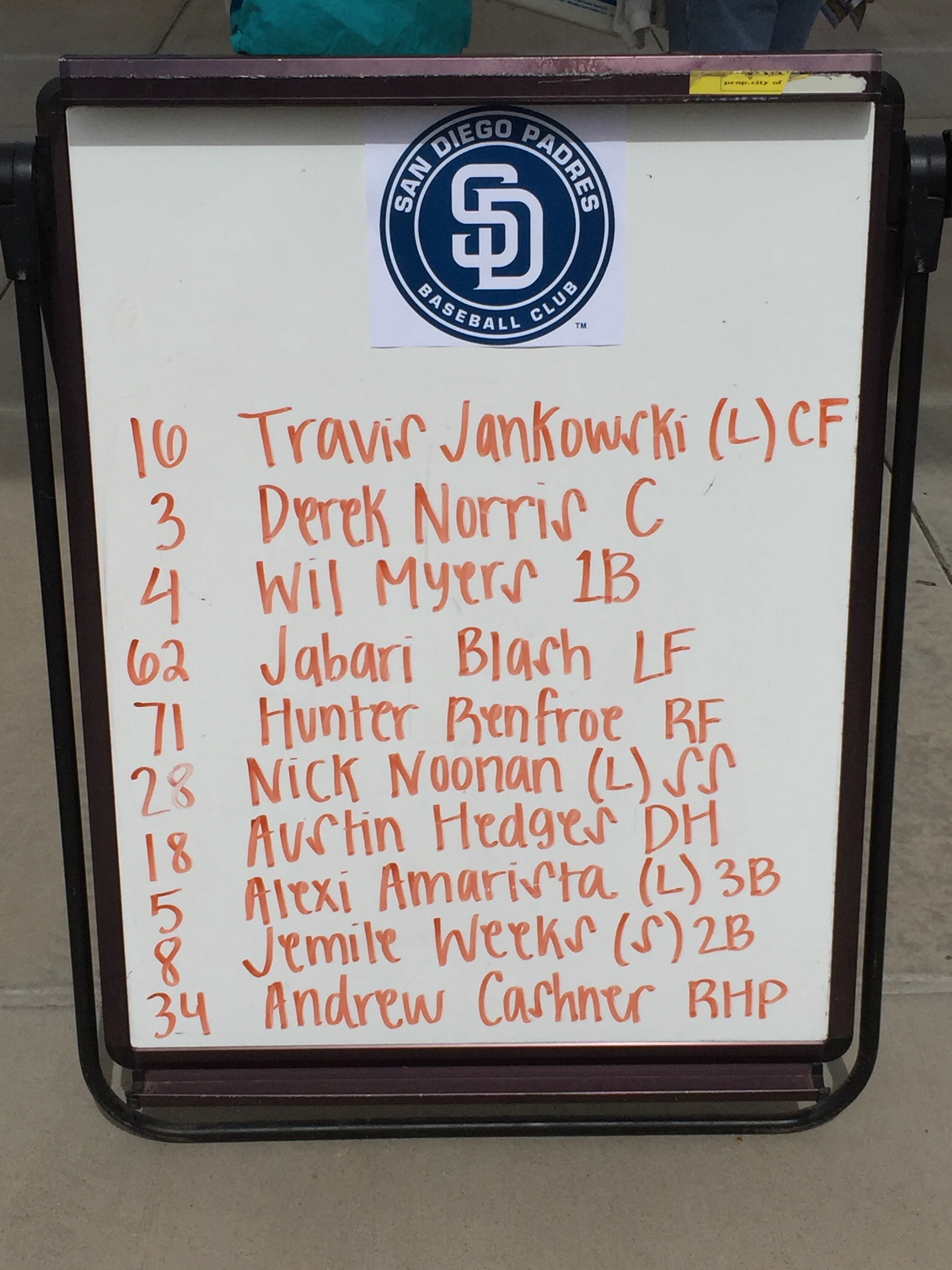 The full squad of Padres was ready to play under the tutelage of manager, Andy Green. Line up for 03/07/16 …