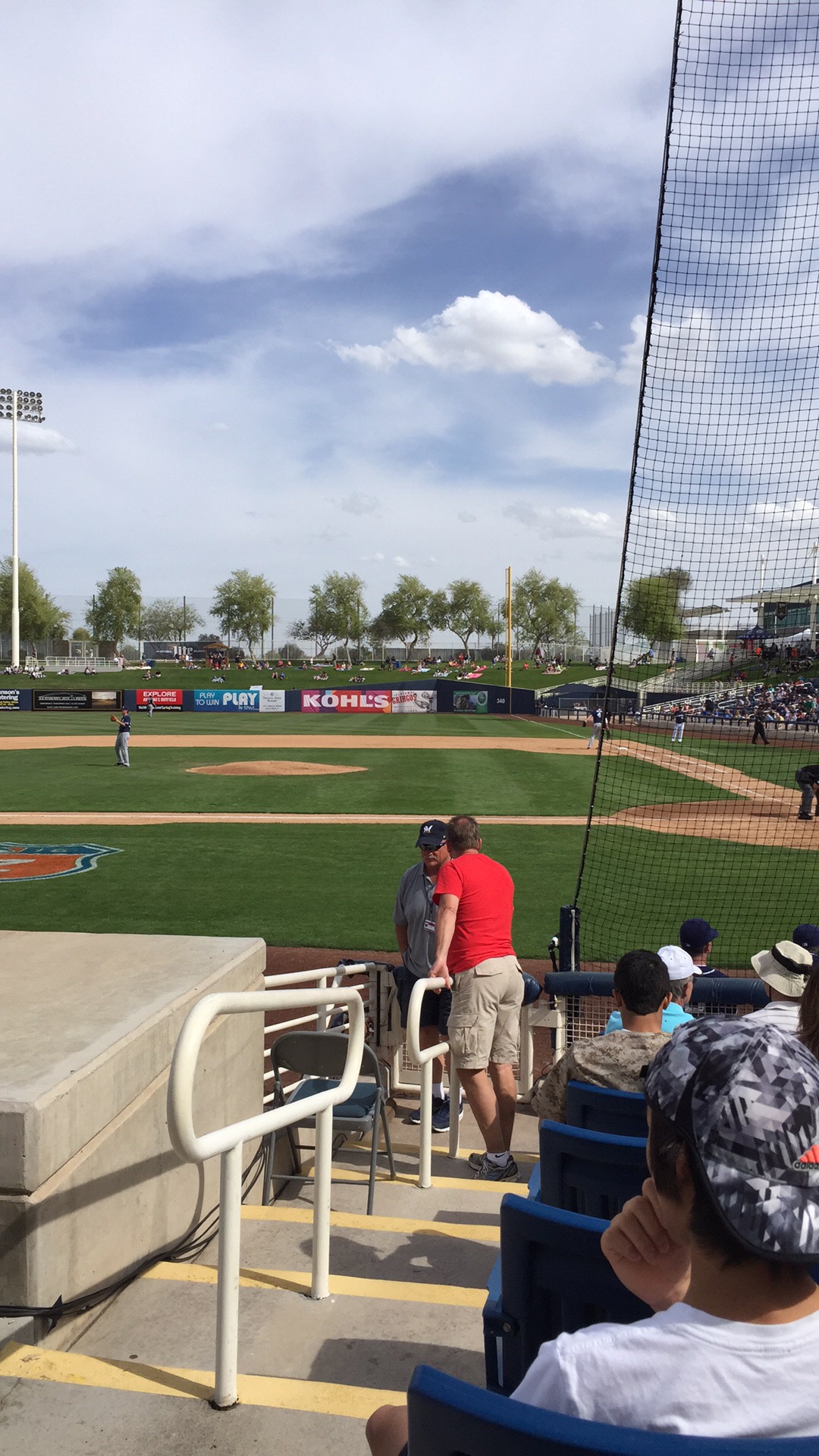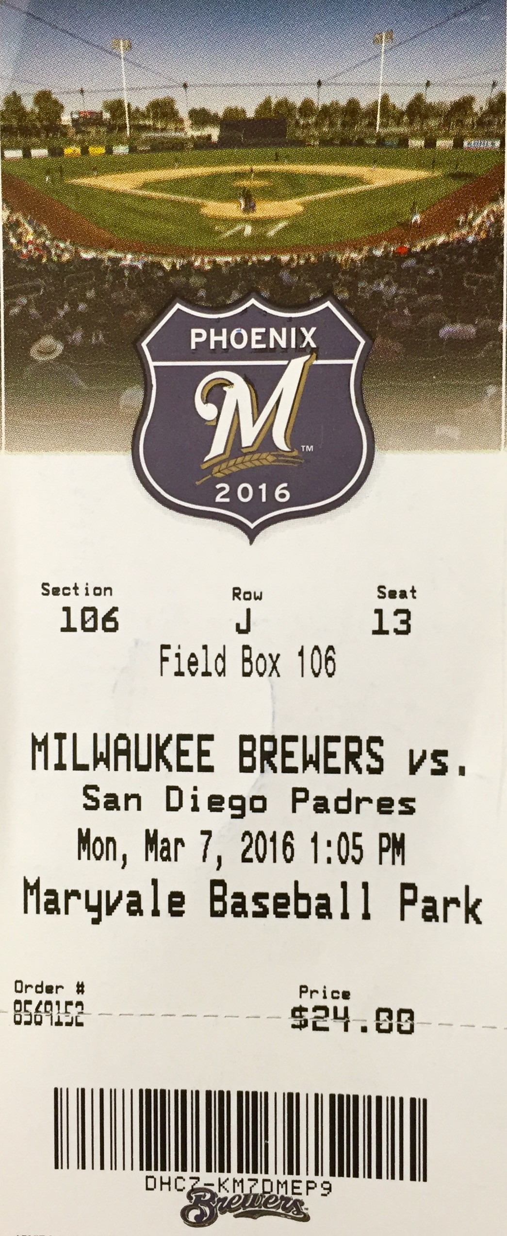 It was a beautiful day at the Brewers’ Maryvale Ballpark. Some people don’t like going to this ballpark and say, “it’s not a great part of town;” however, I have always enjoyed it. The staff is friendly, the fans are real fans, and the concessions offer a wide range of options to please about any taste buds. I didn’t partake at this particular game but be assured that they make one of the best ballpark Bloody Mary’s in the Cactus League.