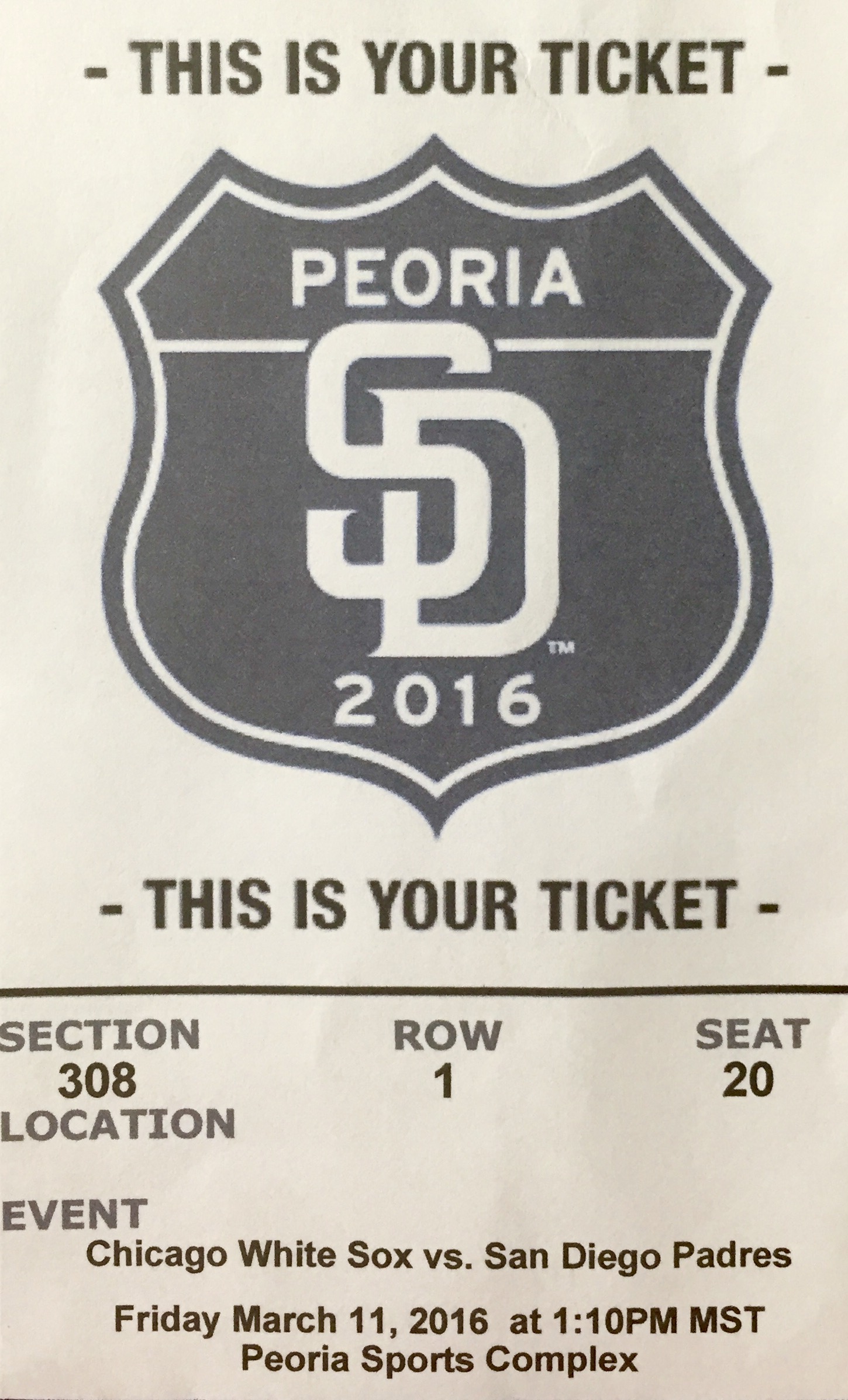 I will be back in Peoria on Saturday … Practice Fields at 10:30, Member Event at 12:30, and Padres host the Indians at 2:30.