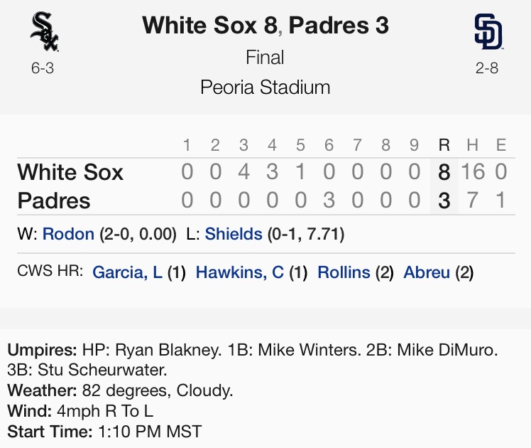 But there was no more scoring and the final was White Sox 8, Padres 3.