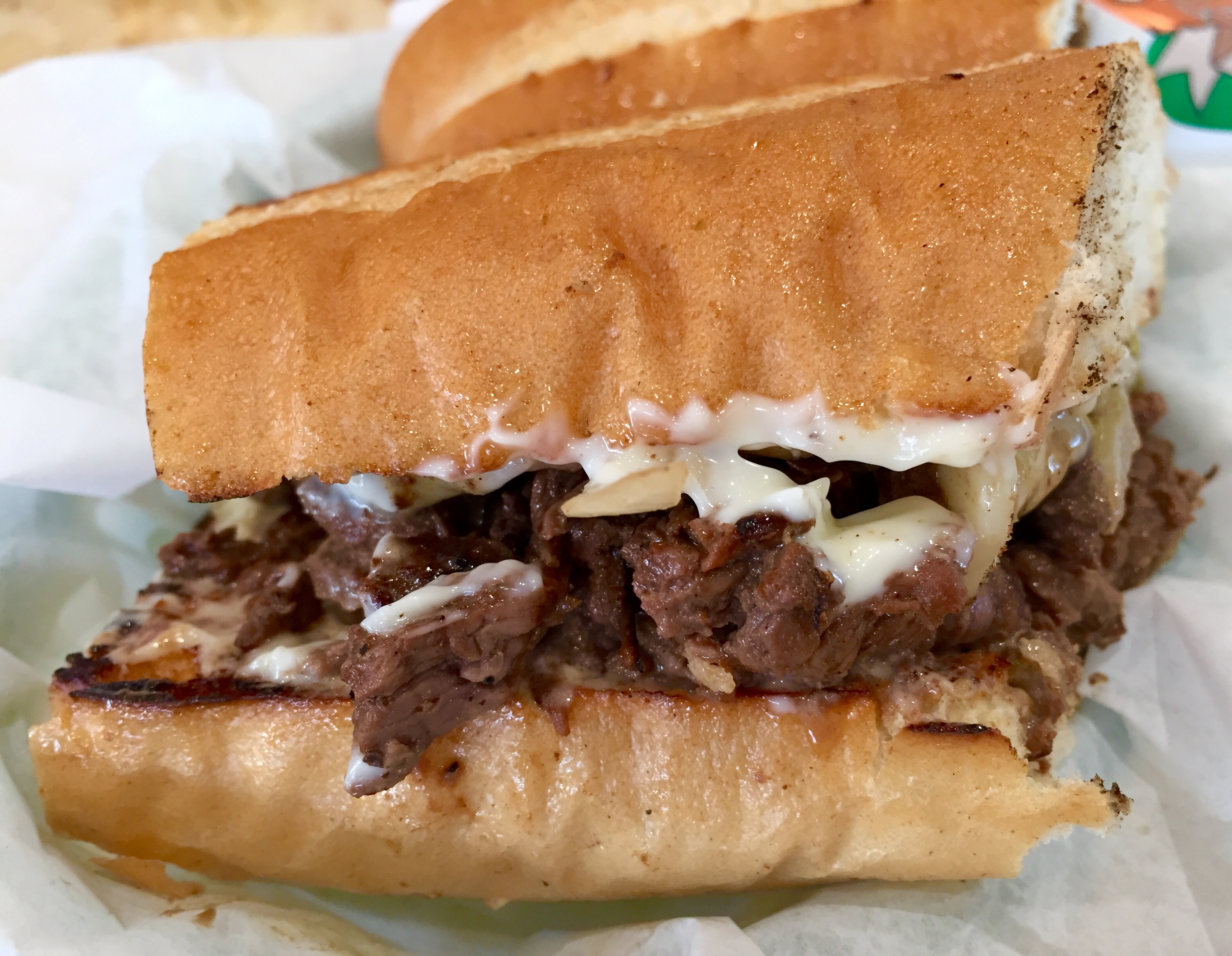 Each sandwich had a generous portion of meat – cooked to perfection. The toppings included grilled onions, Jalapeno peppers, melted Jack cheese, mayo, tomato, and lettuce. It is served on a toasted French baguette that was truly tender, toasted, and tasty! They are hearty sandwiches that will certainly fill you up!