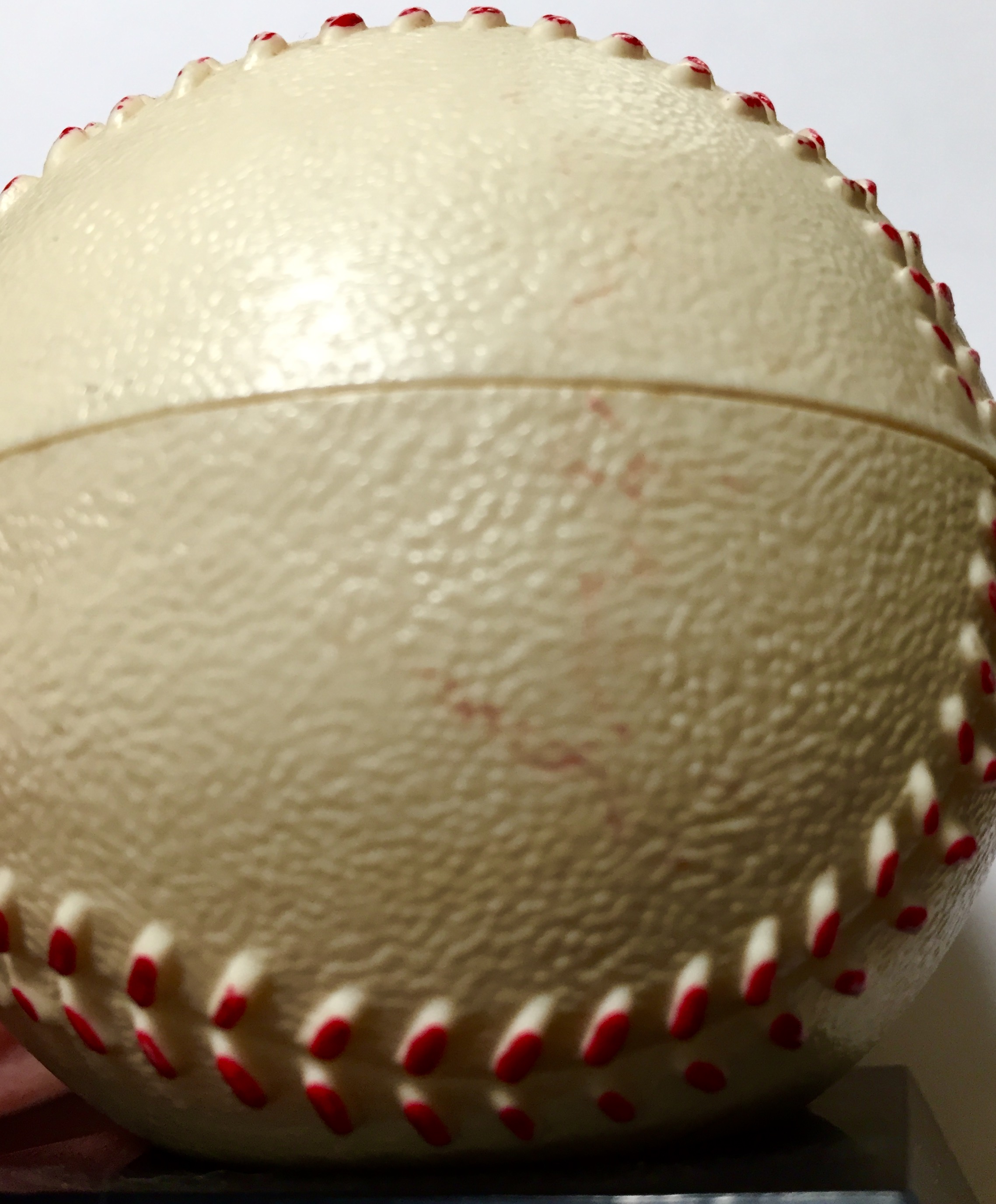 Another player was standing there and he was very tall and sported a moustache. I walked up and asked him if he would please sign my ball. He took the ball out of my small hands and using my grandpa’s red Bic ball point pen, started signing the ball. The surface of the ball is hard plastic and has many little bumps on it, so signing it was no easy chore, but this tall player stood there for a couple of minutes and patiently signed the ball to the best of his ability and handed it back to me and walked away.