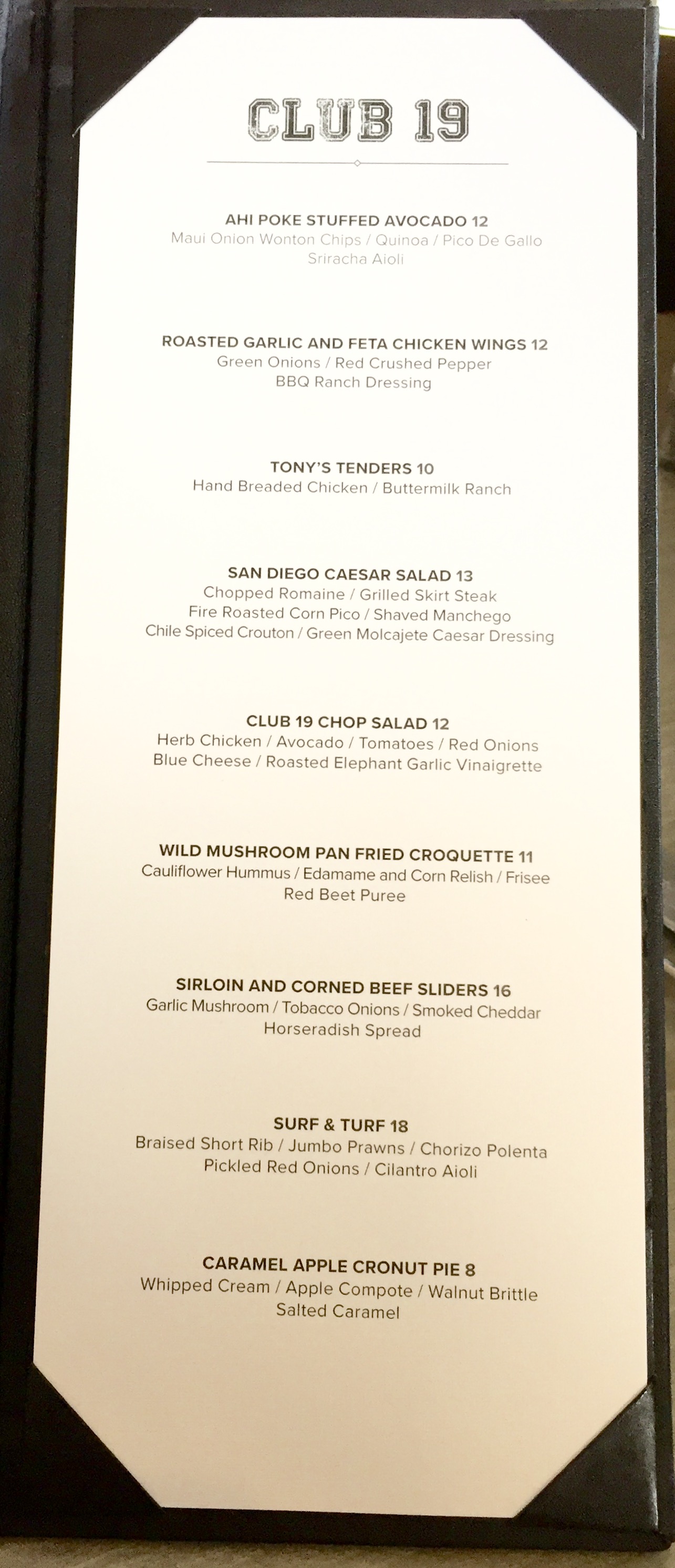 Petco Park 2016 Club 19 Menu